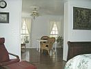 The Magnolia house has 32" LCD TV with DVD player in the living room. The swivel mount TV can be viewed from the kitchen table, the queen size bed, or the sitting area. A lounge/bed sleeps two. The large kitchen has a full size refrigerator with in-the-door ice and water, blender, microwave, toaster oven, toaster, electric range, and dinnerware for 4 place settings. The round glass table features executive chairs for a relaxing cup of coffee or an all-day meeting. You have your own air conditioner with remote control.