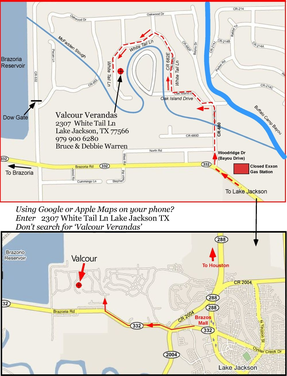 The quiet country atmosphere, far away from traffic and road noise, means your group can unwind and relax. From the verandas, you see only trees and meadows. But the largest mall in the county and all the chain restaurants and the hospital are only 10 minutes away if you need something. And the beautiful Gulf Coast beaches are just 30 minutes south. Two golf courses are just five minutes from your room. If you are on a business trip, the Brazoria county industrial complex is only 20 minutes away, with no traffic jams. Valcour Verandas has free WI-FI wireless Internet.